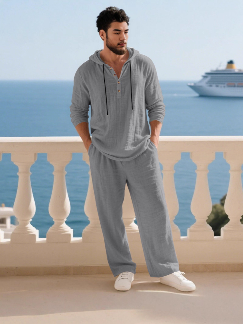 Men's hooded pants suit homewear suit men's casual longsleeved jumpsuit fall home suit